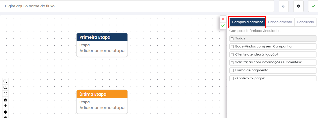 • Ao criar ou editar um Fluxo de Etapas, é possível habilitar a opção Campo Dinâmico.