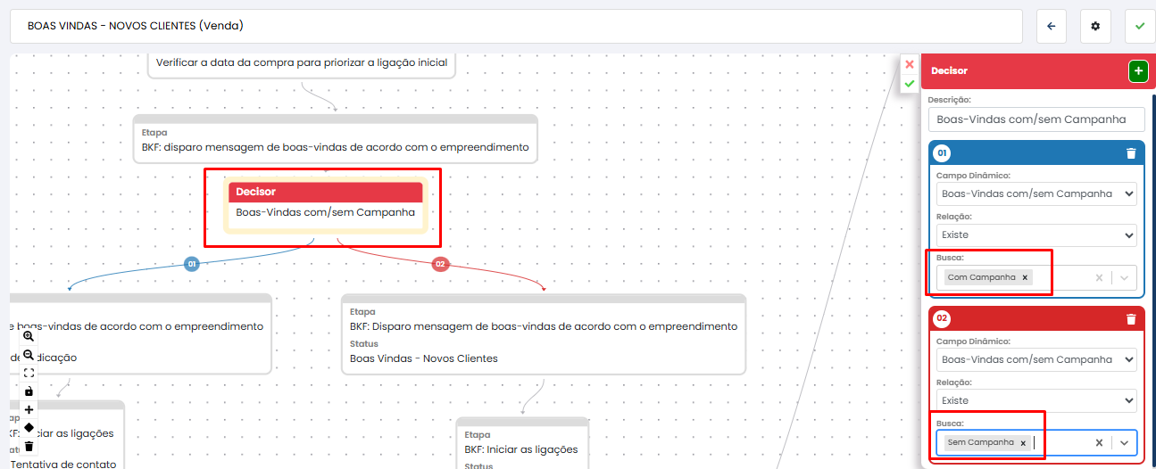 Essa funcionalidade permite que, com base na resposta registrada em um campo, o chamado siga para caminhos diferentes, tornando o fluxo mais flexível e ajustado às necessidades do atendimento.