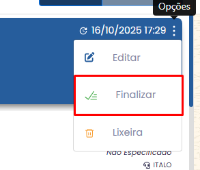 Ao encerrar uma conversa com o cliente, o atendente pode acessar o menu de Opções de Atendimento e escolher “Finalizar Atendimento.”