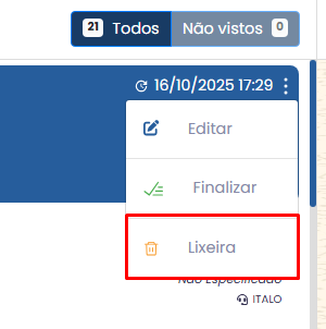 Também é possível enviar o atendimento diretamente para a lixeira, caso seja necessário remover a conversa do histórico.