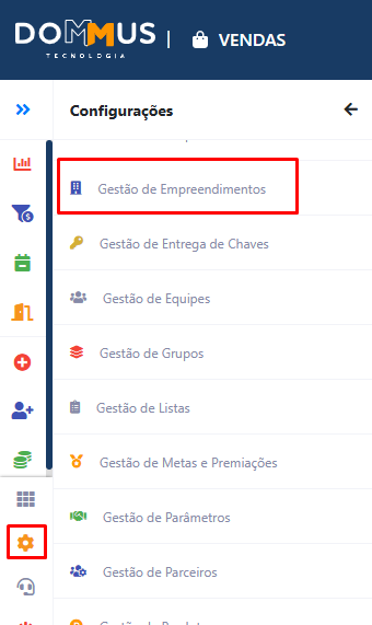 Dentro do módulo de Vendas, selecione a opção Configurações.