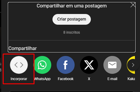 E na tela que se abre, vamos pegar no código do vídeo apenas a URL igual no destaque da imagem.