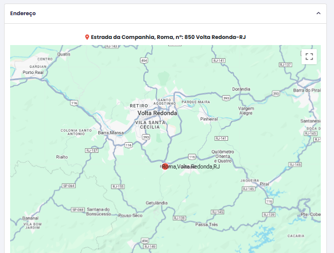 No endereço, ele puxa o que está configurado na gestão de empreendimentos, automaticamente ele mostra o mapa com a localização.