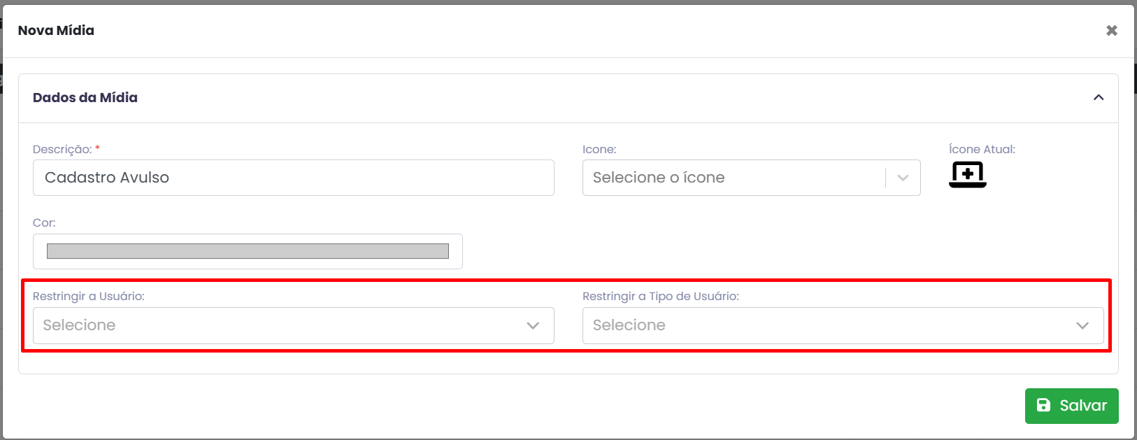 - A mídia ficará disponível para seleção ao cadastrar leads apenas para esses usuários