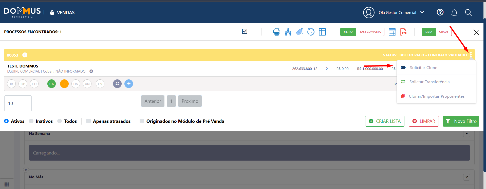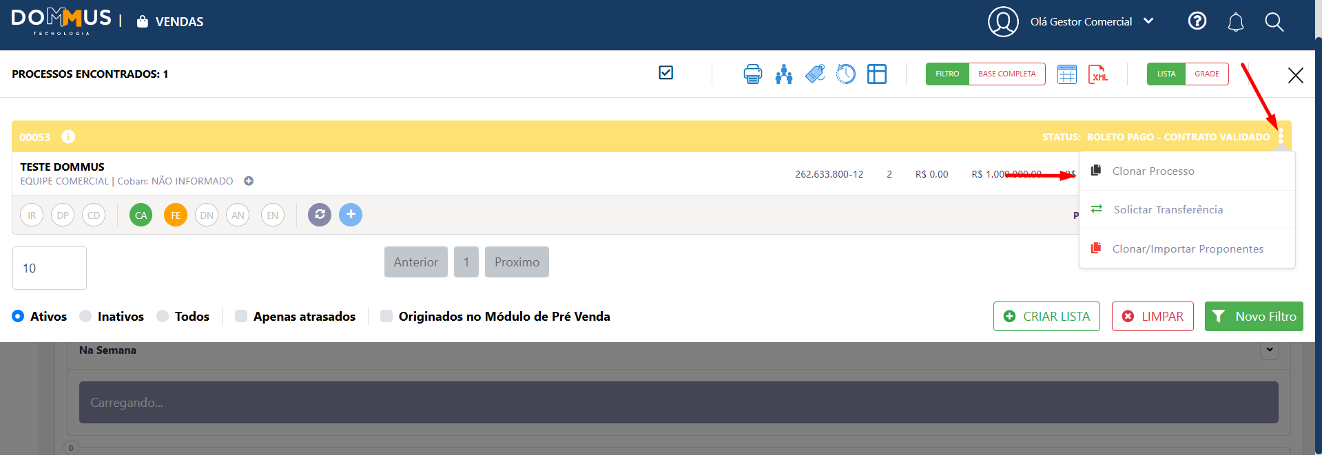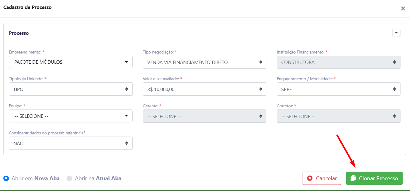 - Clique novamente na opção indicada para confirmar a clonagem (Clonar Processo)