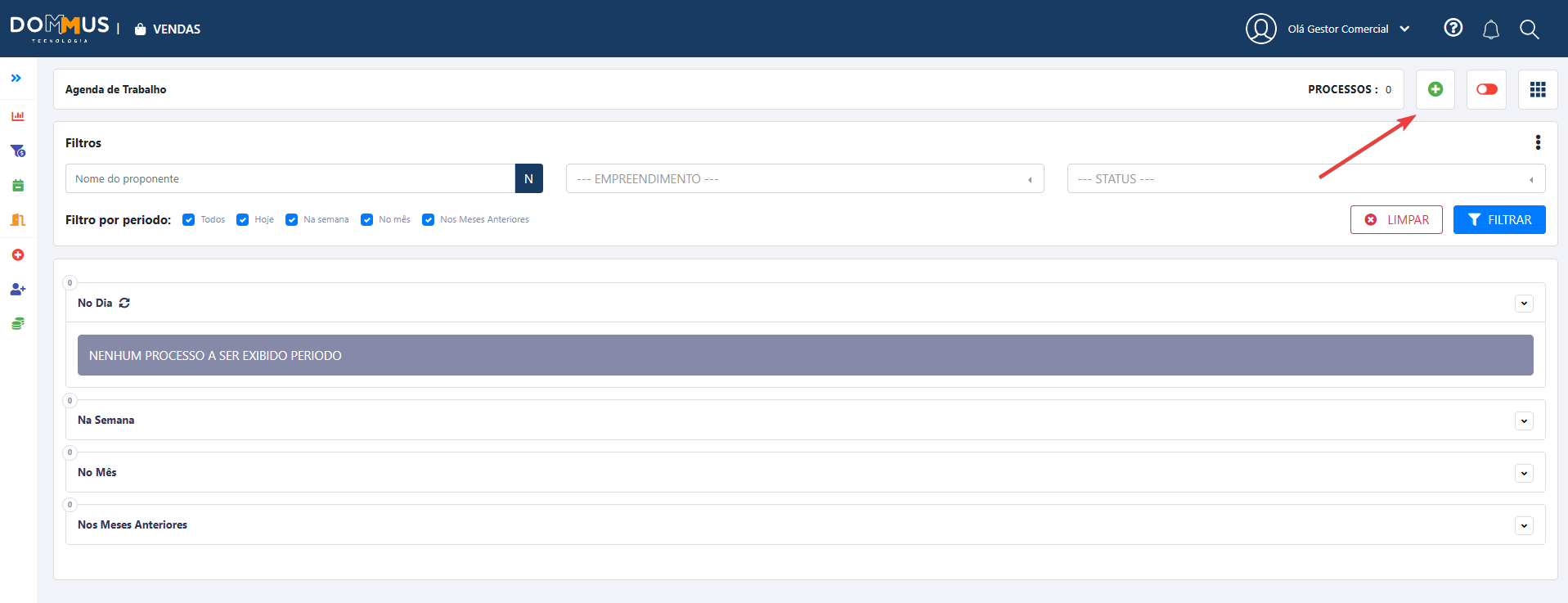 Caso o cadastro do processo deva ser realizado diretamente pelo módulo Vende, ele deverá ser iniciado por meio da opção "+", localizada no lado direito da tela, na parte superior do processo.