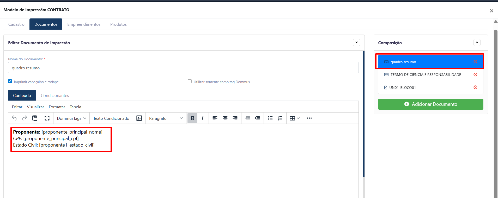 A funcionalidade de edição de Modelo de Impressão permite realizar ajustes em documentos já existentes, como alteração de cláusulas, correção de textos ou atualização de regras e variáveis.