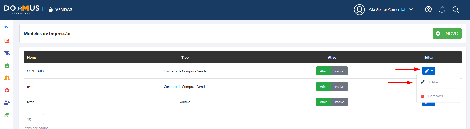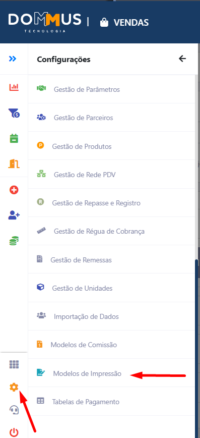 - Acesse a opção Modelos de Impressão